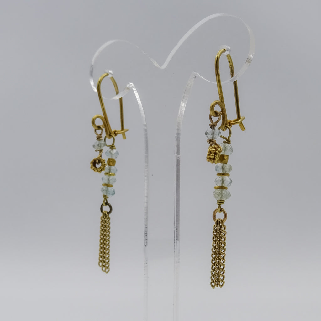 18\22k Gold and Aquamarine Drop Earrings with Chain Tassels