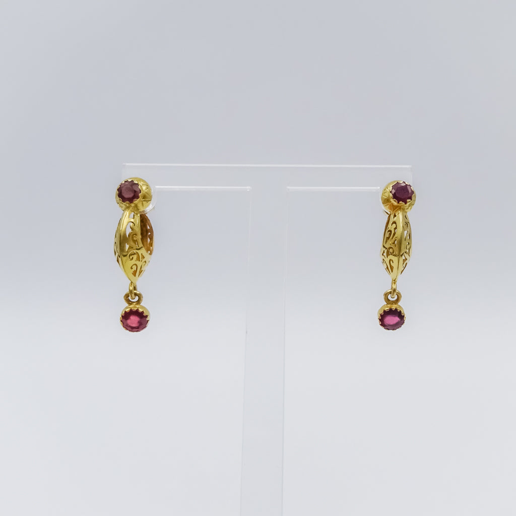 18K Gold Filigree Drop Earring with Ruby and Emerald