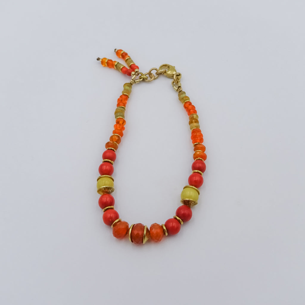 Fire Opal & Coral Bracelet with 18K Gold-Plated Sterling Silver